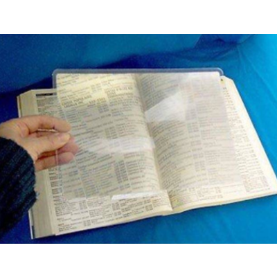 A large pliable sheet magnifier. With this item you can enlarge a whole page of print at once. Ideal for anyone with minor vision problems. 2x magnification.