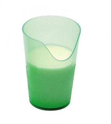 The rim on our Nosey Cup has been designed so a person can drink without tipping their head back to drain the glass. It can be tipped beyond the point where a normal cup would hit the bridge of your nose. Designed for people with limited neck movement, a bed patient or in a wheelchair with a headrest.