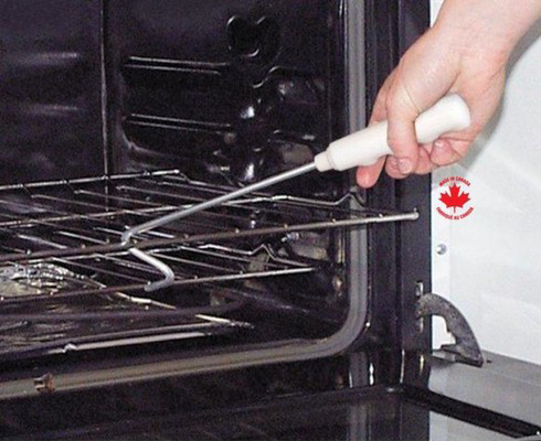 A kitchen helper for people in a wheelchair or with a limited range of motion. Push/pull hot oven racks or use as a reacher.