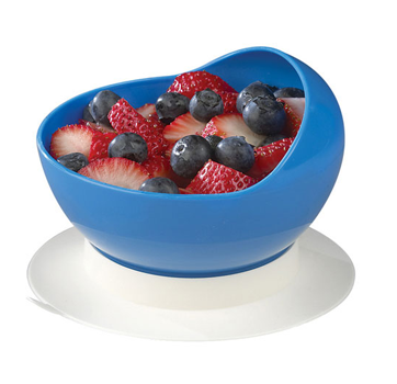 The Scooper Bowl with Suction Cup Base works for all ages but is especially useful for anyone who needs a bit of help getting food on the utensil. The unique shape of the bowl makes it easier. The base doesn't skid because of the suction cups so there's no more worry about spills and messes. Just be sure to remove that base before placing the bowl in the top rack of the dishwasher.
