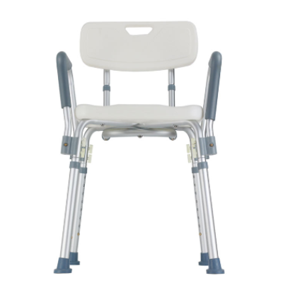 The ProBasics Shower Chair is designed for individuals who require seating support and stability when bathing or showering. The chair features a comfortable contoured textured seat and back that can support patient weights up to 300 pounds. Arms and back are easy to remove. The angled legs have one-inch, easy-snap button adjustments and wide-based, non-skid feet for added sturdiness and safety. Tool-free assembly and limited lifetime warranty are standard.