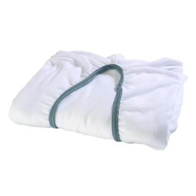 UltraKnit Optimum Bottom Sheet, envelope design, 100% poly, 20.5 oz, white, stone blue binding
