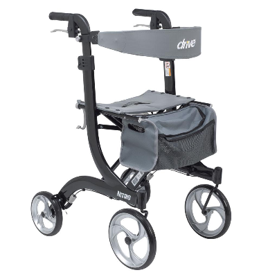 - Handsome and removable zippered storage bag Unique bag attachment keeps bag securely in place when rollator is open or folded