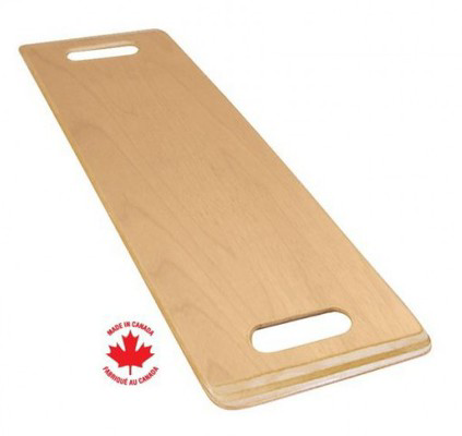 A transfer board with hand holes at each end for ease of carrying and transferring patients. Made of multi-laminated birch plywood with a smooth lacquer finish. Ends are tapered and edges are rounded for easily sliding on and off.