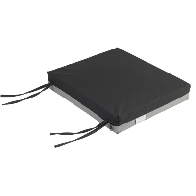 Basic foam cushion with gel insert for temporary use on wheelchairs or additional comfort on transport chairs.